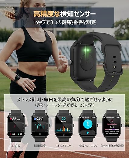 ・【多彩な文字盤・実用な機能満載】オンライン更新文字盤を無料で自由変更できたり、自分も家族、恋人、アイドル、及びペット等の写真を編集可能、毎日の気分転換にしましょう。ほかに、長座注意、水分補給、女性生理管理、音楽制御、天気情報、ストップウォッチ、スマホ探し、遠隔撮影、懐中電灯、多言語対応など日常生活に実用的な機能がたくさん揃えているスマートウォッチです。ios9.0以上、android6.0以上のスマホに対応可能。誕生日やお祝い、敬老の日、クリスマス、新年などのプレゼントとしてもおススメ!