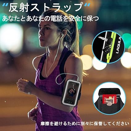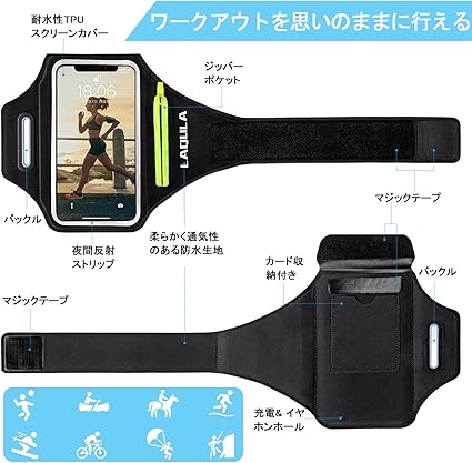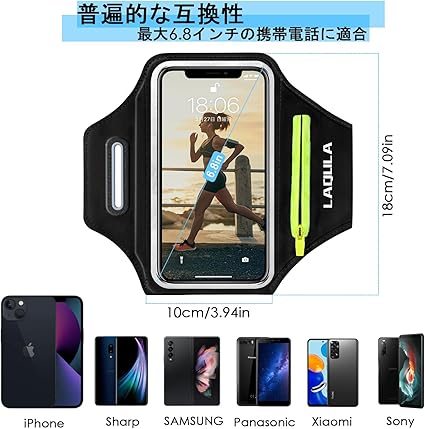 ・Face ID & 高感度タッチ対応 : ランニングスマートフォンのアームバンドは透明度の高いPVC素材でできており、液晶画面を高い透過率で保護しながら、FACEIDやタッチ操作を違和感なくスムーズに行えます。 また、スマートフォンの画面タッチ操作は、装着したままスムーズに行えます