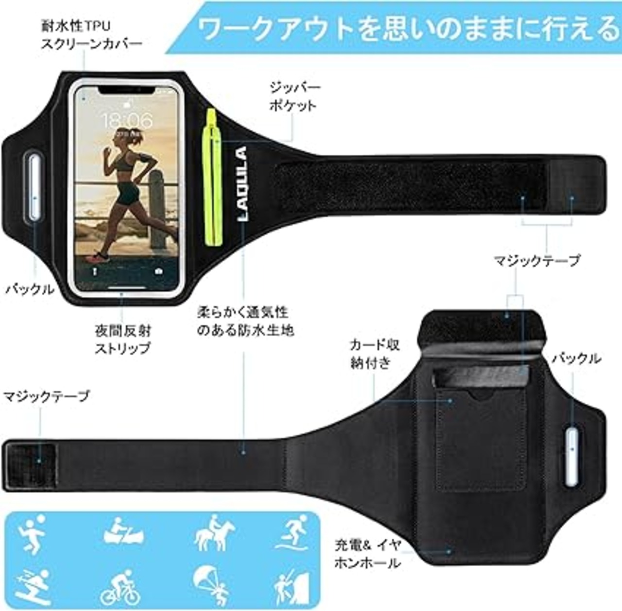 ・イヤホン穴付き&夜間反射 : イヤホン用の穴が付き、運動中でもお好きな音楽を聞きながらお体を鍛えることができます。また、反射性のストリップがスクリーンウィンドウを包み込み、夜間の視認性を高め、夜間の安全なランニングを実現します。 ジョギング、ランニング、サイクリング、登山、クロストレーニング、マウンテンバイク、ジムなどのほとんどのスポーツ活動に最適です