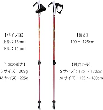 ・サイズ/無段階伸縮式:80〜110cm(収納時75cm)対応身長125〜170cm