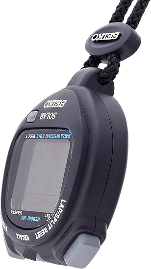 電地交換の必要がないソーラー充電ストップウォッチ。フル充電後、光の当たらない状態で約24ヵ月バッテリー持続。大容量300メモリー搭載。