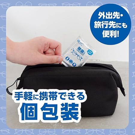 ・拭くだけでメガネレンズのくもりを防ぎます。