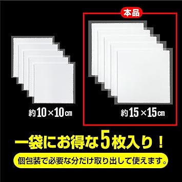 ・【特 徴】マイクロファイバー素材で作られたクリーニングクロスです。微細な繊維がレンズや液晶画面に傷をつけることなく、汚れをしっかりふき取ります。使いたい分だけ取り出せる個包装の5枚セットです。