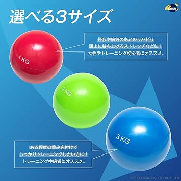 A-ITEM フィットネスボール ウェイトボール メディシンボール 腹筋 背筋 3種類 1kg 2kg 3kg 筋トレ インナーマッスル 体