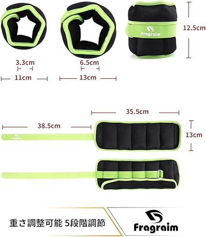 Fragraim アンクルウェイト 5段階調節 2個組最小1.5kg-最大8kg 筋トレウェイト 重り 手首 足首 パワーアンクル 重さ調整