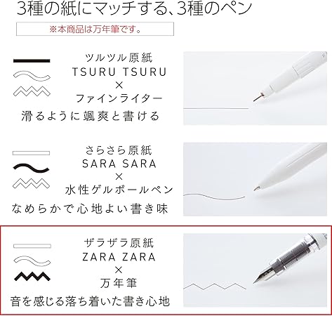 ・紙面の凹凸が特長のザラザラ原紙と組み合わせて使うことで、軽いタッチで紙面をなぞる音を感じる書き心地。