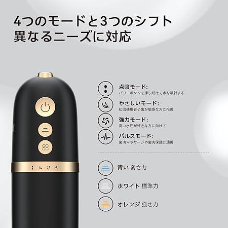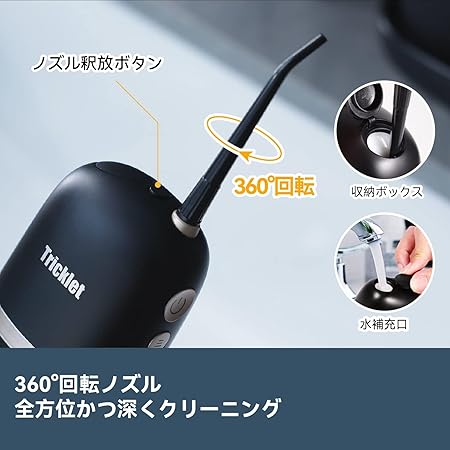 ・【4つのフロスモードと3つの調整可能な圧力】スポットスプレー、穏やかなスプレー、強力なスプレー、パルススプレーの4つのフロスモードを備えたTrickletハンドヘルド電動ウォーターデンタルフロッサーの多用途性を発見してください。 各モードには、個人の好みに合わせて 3 つの調整可能な圧力設定が用意されています。 360°回転可能な水ノズルと 4 つのノズル オプションを備えており、標準的な洗浄、歯肉マッサージ、舌毛の洗浄、歯科矯正装置のケアの要求を簡単に満たします。