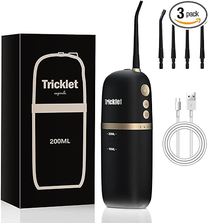 口腔洗浄器、Trickletコードレスフロッサー、4つのモードと3段階調整 、IPX 7防水、家庭や旅行に適したポータブルUSB充電水歯石(
