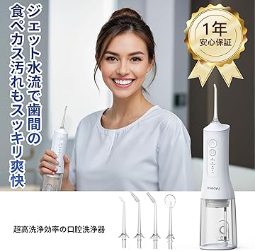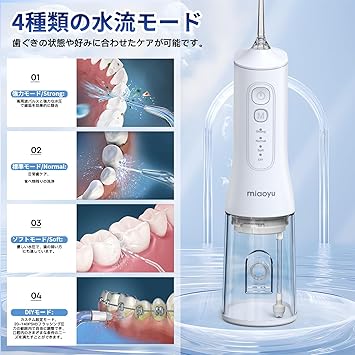 口腔洗浄器 2024【最新型】 miaoyu ジェットウォッシャー ウォーターフロス 口腔洗浄機 替えノズル4本 4種類の水流モード 310