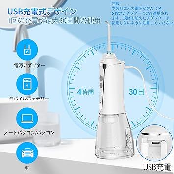 【最新型】H2ofloss 口腔洗浄器 ジェットウォッシャー替えノズル4 本 300ml 5段階調整 口腔洗浄機 USB充電式 ウォーター