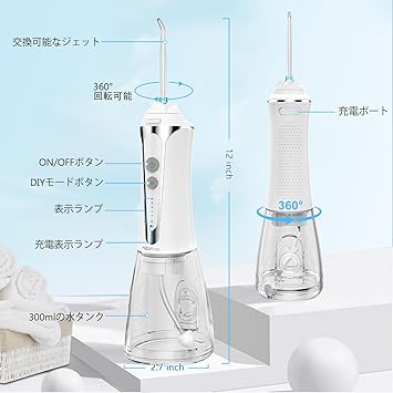 ・【300ミリリットルの回転式取り外し可能な貯水槽 / 簡単な操作】 300ミリリットルの取り外し可能な水タンクを備えた歯 ジェット ウォッシャーは、歯のクリーニングを中断することなく保証します。広角設計を採用して、こうくう洗浄機は水タンクの内部を簡単にクリーニングできます。ユーザーフレンドリーな操作、初心者に適しています。