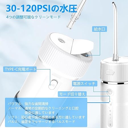 Mayfoo 口腔洗浄器 ジェットウォッシャー コードレス 超コンパクト ミニ携帯型 替えノズル6本 4段階強度調整可能 1100mAh大容