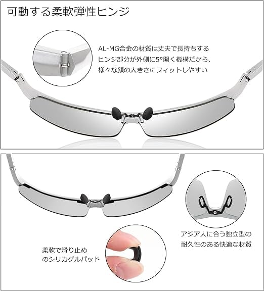・【軽量フレーム】フレームはAL-MG合金を採用しており、高強度で壊れにくく、耐久性に優れています。さらに 、わずか26gの軽量化設計により、掛けていないような快適さを実感できます。さらに、滑らかなラインとシン プルなデザインで高級感に溢れていて、屋外活動の愛好家へのプレゼントとしても理想的です