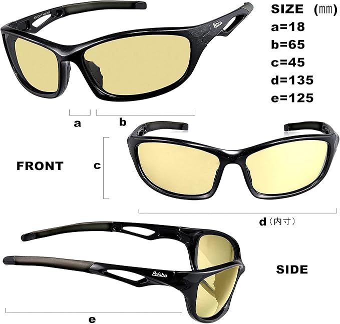 ・■レンズカラー:夜間イエロー (弱偏光レンズ) ■可視光線透過率:75%以上 ■偏光度:30% ■UVカット:99%以上 ■ブルー光カット率:50% ■夜間運転規格:適合