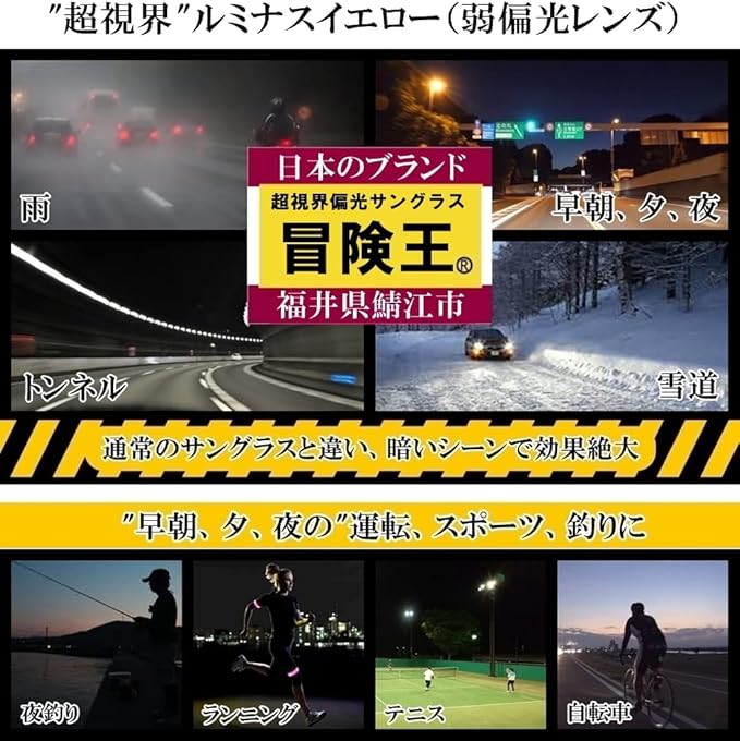 ・日本の老舗ブランド「冒険王」。メガネの世界3大産地、福井県鯖江市の"視泉堂"プロダクト。創業60年の経験から生み出されたのが夜間運転 規格適合の弱偏光サングラス 。 夕方から夜にかけての利用にぴったりの人気商品。