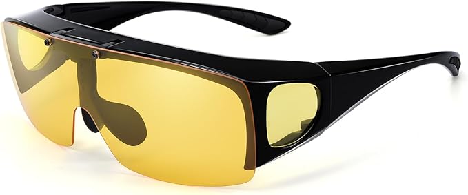Br'Guras 夜間用オーバーサングラス ナイトドライブ用サングラス ドライブサングラス 跳ね上げ式レンズ イエローレンズ ナイトビジョン