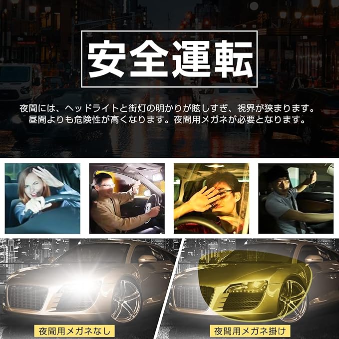 ・【暗視メガネ・夜間サングラス】黄色レンズサングラスは増光レンズで作られています。夜間の運転時の対向車のライトの眩しさを軽減してくれます。目の疲労が緩和でき、安全に運転するのを助けます。