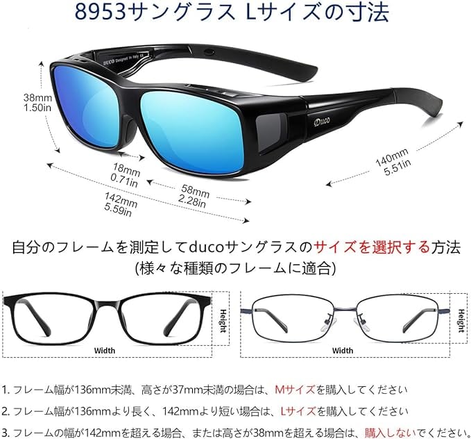 [DUCO] メガネの上から掛けられる オーバーサングラス めがね さんぐらす 偏光レンズ UV400 紫外線カット 花粉サングラス メンズ