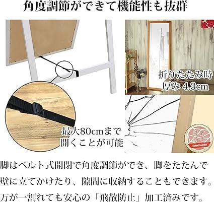 ・主材 : 天然パイン材 4ミリ厚ミラー ベルト開閉式 裏板 : 天然ベニヤ ネジ止め フレーム幅 : 約4cm