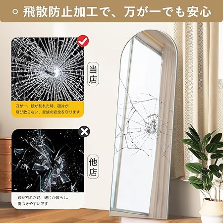Mirahope アーチ型 姿見 全身鏡 ミラー 鏡 リビング 玄関 北欧 スタンドミラー 壁掛け 立て掛け アルミフレーム おしゃれ イン
