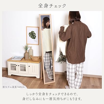 デザイン性、利便性どちらも兼ね備えた機能的なスタンドミラーです。●高すぎず、低すぎない。スリムタイプのスタンドミラー