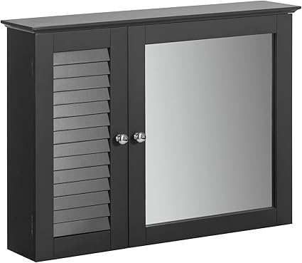 SoBuy ミラーキャビネット 吊り戸棚 鏡付き 洗面台 鏡 おしゃれ 収納棚付き 北欧風 幅65×奥行15×高さ49cm 戸棚 浴室ミラー