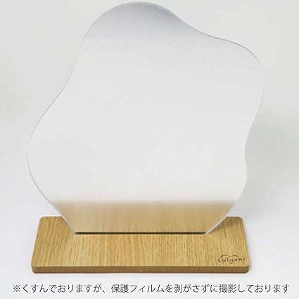 Lolover ウェーブミラー ウッド スタンド 付き 割れない 卓上 ルーム ミラー 波型 化粧 鏡 ベッドサイド オブジェ
