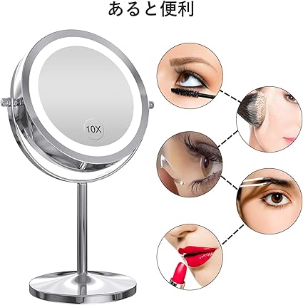 ・【LEDライト付き&タッチ式】LEDライト付きで光が均一に顔を照らし、雨などで部屋が暗い時や暗い場所でもムラなく照ら、綺麗にメイクすることできます。画面の下部にはタッチパネルであり、ワンタッチすると電源をon・offに切替ます。長押しすると、ライトをお好みの明るさに無段階調整ができます。