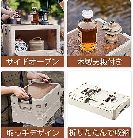 LongYi 収納ボックス 折り畳みコンテナ 木製の蓋付き 折りたたみ 収納ケース 取っ手付き コンテナ ボックス キャンプ 大容量 アウト