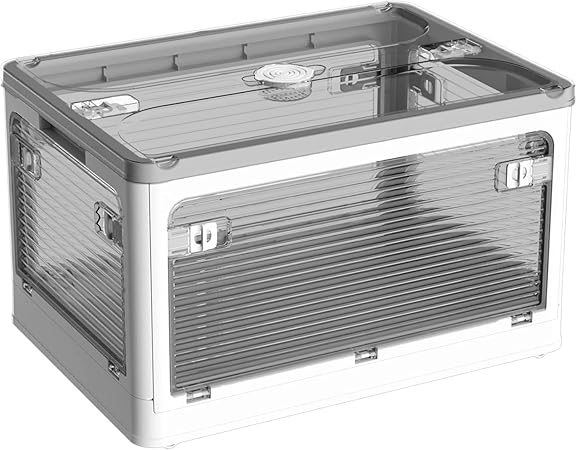 ・【乾燥剤を入られる可能・湿気とさよなら】この収納コンテナの天板中央の丸い部分には乾燥剤や防虫剤を入れることができるスペースがあり、梅雨の季節でも本や衣類を清潔でスッキリとした状態に保つことができます。また、四面と蓋が半透明なので中身が見やすし、取りたい物の位置を1秒で確認でき、蓋を開けて探す必要がない折り畳み コンテナは、時間と手間を省くのに便利です。