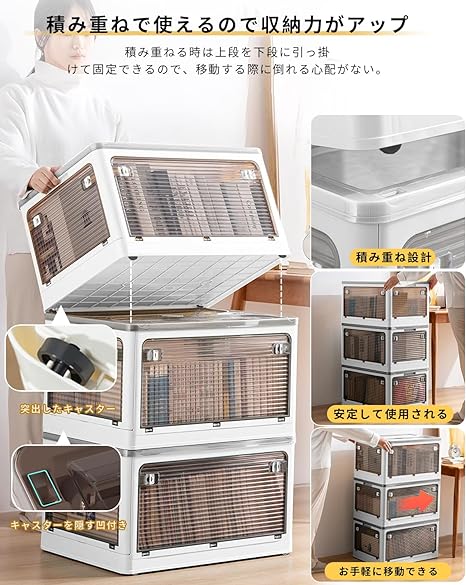 AZMKOO 収納ボックス 折り畳み 蓋付き 全方向から取り出せる キャスター付き 折り畳み コンテナ ボックス 衣装ケース 押し入れ 収納