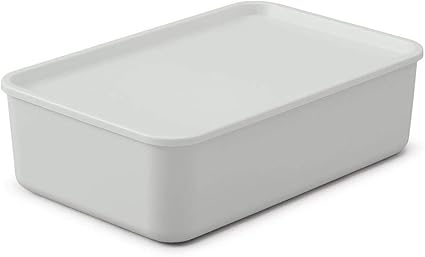シンプルで丸みのあるやわらかなデザインのフタ付き積み重ねBOXです。
