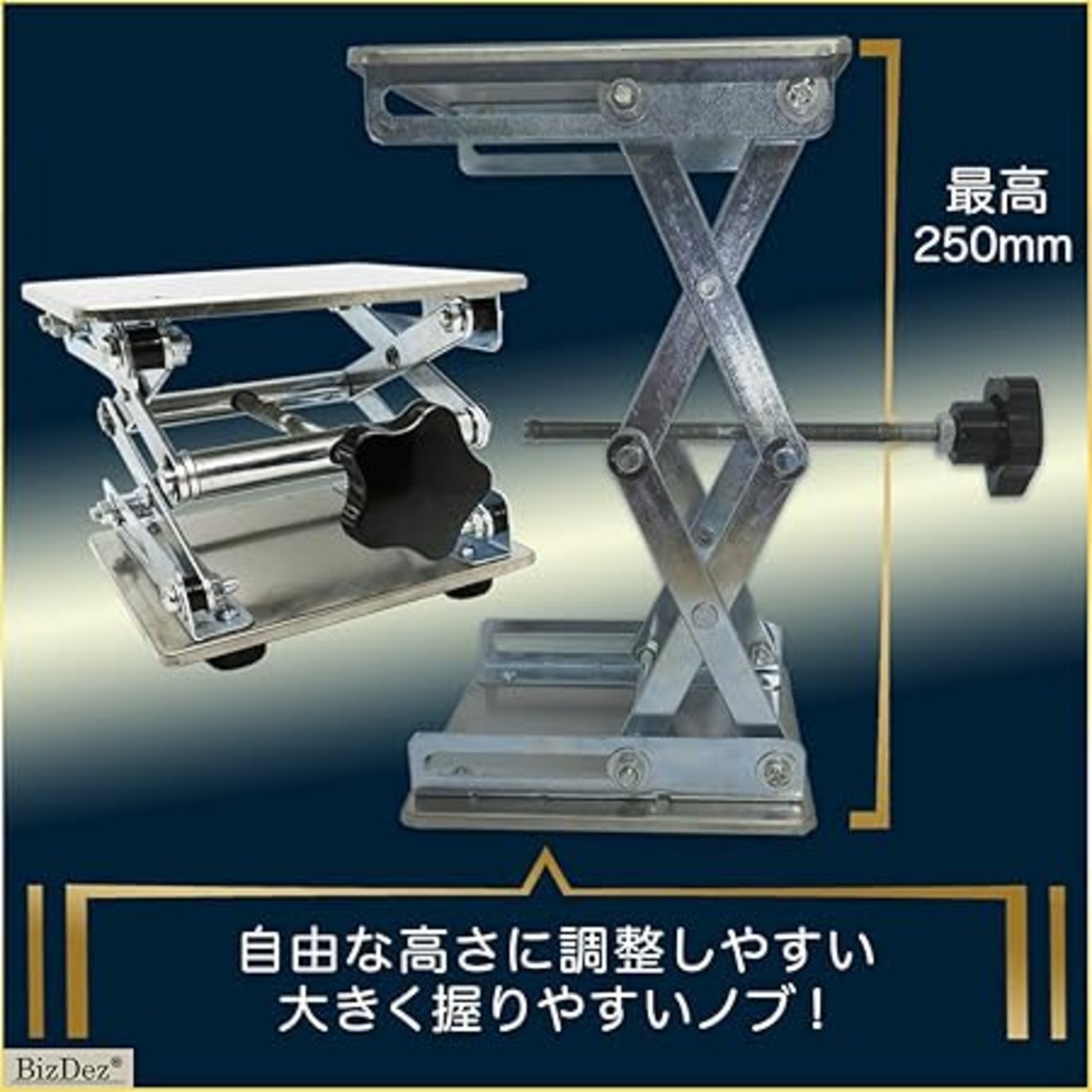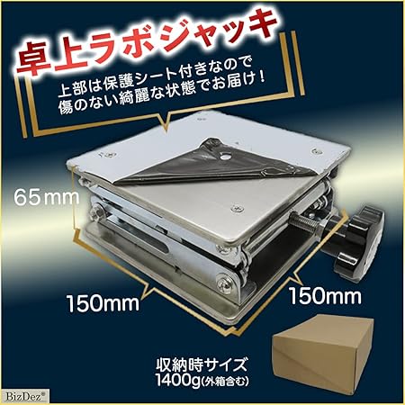 BizDez ラボジャッキ 昇降台 ステンレス製 作業台 高さ調整 実験 研究 150*150*250mm