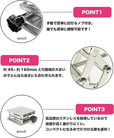 benrii 【科学工作】実験用器具 ラボジャッキ ステンレスミニ昇降台 小型昇降作業台 物体や実験器具の高度調整 研究 学習 教育 授業