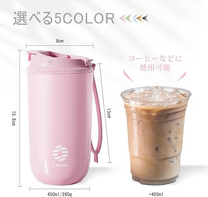 FJbottle 水筒 450ml 真空断熱 マグボトル(ストラップ付き) 2ウェイボトル 直飲み ストロー コップ飲み 保温 保冷 洗いや