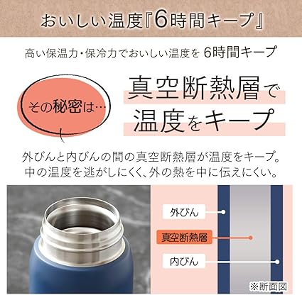 外びんと内びんの間の真空断熱層が温度をキープするので