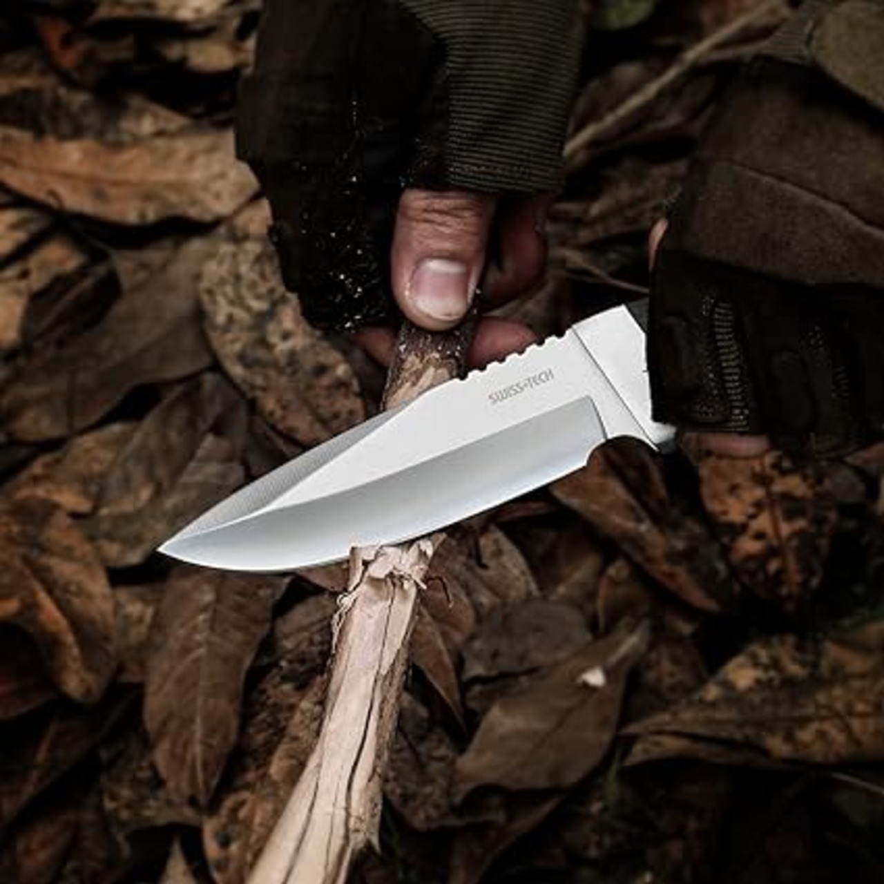 SWISS+TECH ナイフ シースナイフ アウトドアナイフ キャンプナイフ フルタング構造 天然ウッドハンドル 刃渡り約10cm ケース付