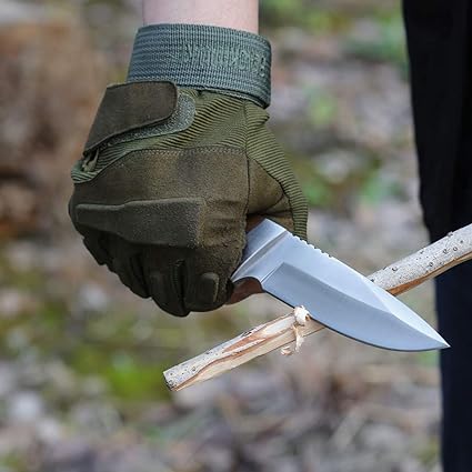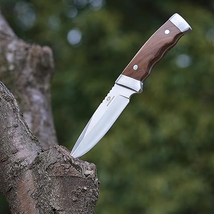 ・【フルタング構造】シースナイフのブレードを挟み込んだ堅牢なフルタング構造で、グリップ材質は天然ウッド材で手に優しくて、質感があります。ブレード背中に滑り止めの角度をデザインしています。