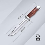 ・【仕様】全長:約26cm、刃渡り:約14cm、刃厚み(付け根部):約4mm、重量:170g、ブレード材質:ステンレス鋼、グリップ材質:芯はステンレス鋼で、外は牛革です。