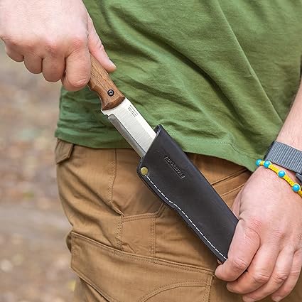 ・ 快適なハンドル: このナイフのハンドルはウォールナットウッド製で、ダニッシュオイルで仕上げられており、湿気や汚れに対して耐性があります。ハンドルはケーブルタイで固定されており、ナイフを掃除するために簡単に外すことができます。