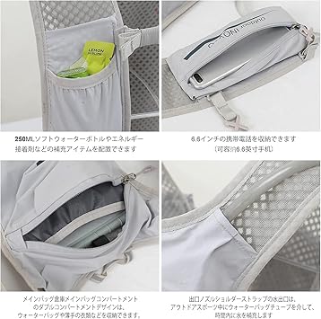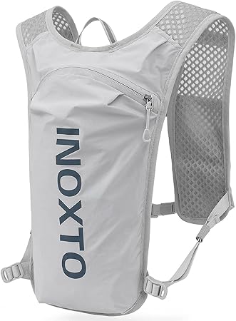 ・【超軽量設計】高品質のナイロン素材と超軽量設計により、より快適に走ります。 INOXTOスポーツバックパックの重量はわずか140グラムで、メインコンパートメントに1.5リットルを収納できます。 また、左右のベルトには250mlのペットボトルを収納できるポケットが付いています。 メインポケットの横には携帯電話やアイテムを収納できるポケットがあり、音楽を聴きながらジョギングができます!