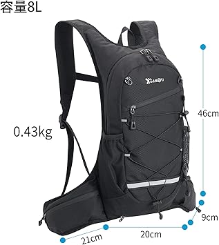 ・【軽量、大収納容量】:僅か430gで柔らかくて快適な自転車バッグパック。メインポケットは8Lハイドレーションが収納可。それ以外、左右のストラップに500mlペットボトルを収納できるポケットも付けています。