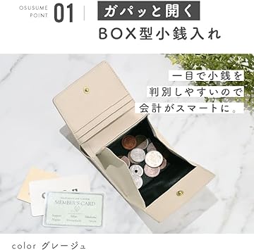 ・小銭入れはBOXタイプ。一目で小銭を判別しやすいので、レジ前で慌てず会計もスマートに。