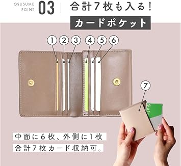 ・二つ折り財布にしては、多めのカード収納7ポケット完備。カードが多い方も安心。