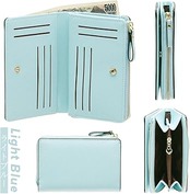 [ONLYOU] 二つ折り財布 レディース お財布 ファスナー 小銭入れ カード入れ 10枚収納 ミニ財布 チャームセット (ライトブルー)