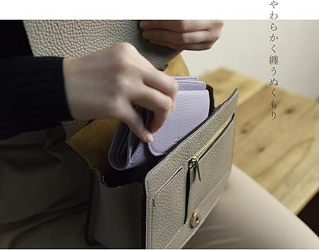 ・【やさしく馴染む、わたしと呼吸する】柔らかで温かみのある形が愛らしい二つ折り財布。素材は牛革で、デコボコとしたしわ模様を施した豊かなシボの表情が、使うほどに味わいを深めて自分だけの「ひとつ」になっていきます。日々の生活にやさしく馴染み、本革ならではのエイジングを楽しめるお財布です。
