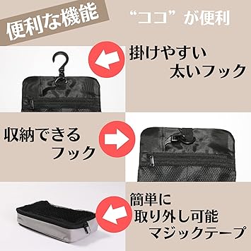 SPACE HOBBY(スペースホビー) トラベルポーチ 吊り下げ 吊るして使える トイレタリーバッグ コスメポーチ 旅行用ポーチ 収納バッ