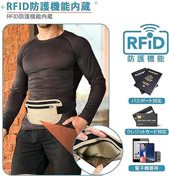 ・【RFID保護!隠せる防犯デザイン】近年国内外で多発しているスキミング「カード犯罪」(外部から特殊機器を使用しクレジットカードやICカード情報を盗み取る犯罪)。このセキュリティポーチはシンプルですが、機能をぎゅっと詰め込んで作った腹巻きタイプのセキュリティぽーちです!セキュリティぽーち機能が貴重品を守るポーチ!スキミング防止ポケットを搭載、スキミングを遮断して。個人重要情報の安全性を確保する!