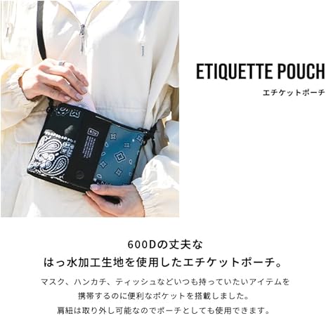 ・600Dの丈夫なはっ水加工生地を使用し、アイディア次第で色々用途が広がるエチケットポーチ