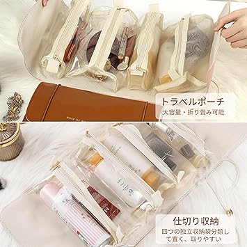 【雲見】トラベルポーチ メイクポーチ 化粧ポーチ 大容量 4仕切り 吊り下げ 化粧バッグ トラベル 持ち運び バスルームポーチ コスメポーチ
